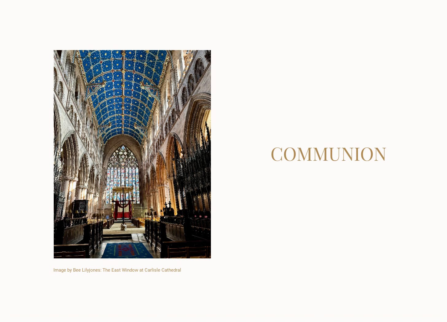 Wednesday April 2, 2026. Here I am in Carlisle again, with my husband M, this time. We had breakfast, wandered around a gallery and museum and onto Carlisle Cathedral to ooh and aah at the cobalt and gold ceiling and the recently voted Nation’s Favourite Stained Glass Window.